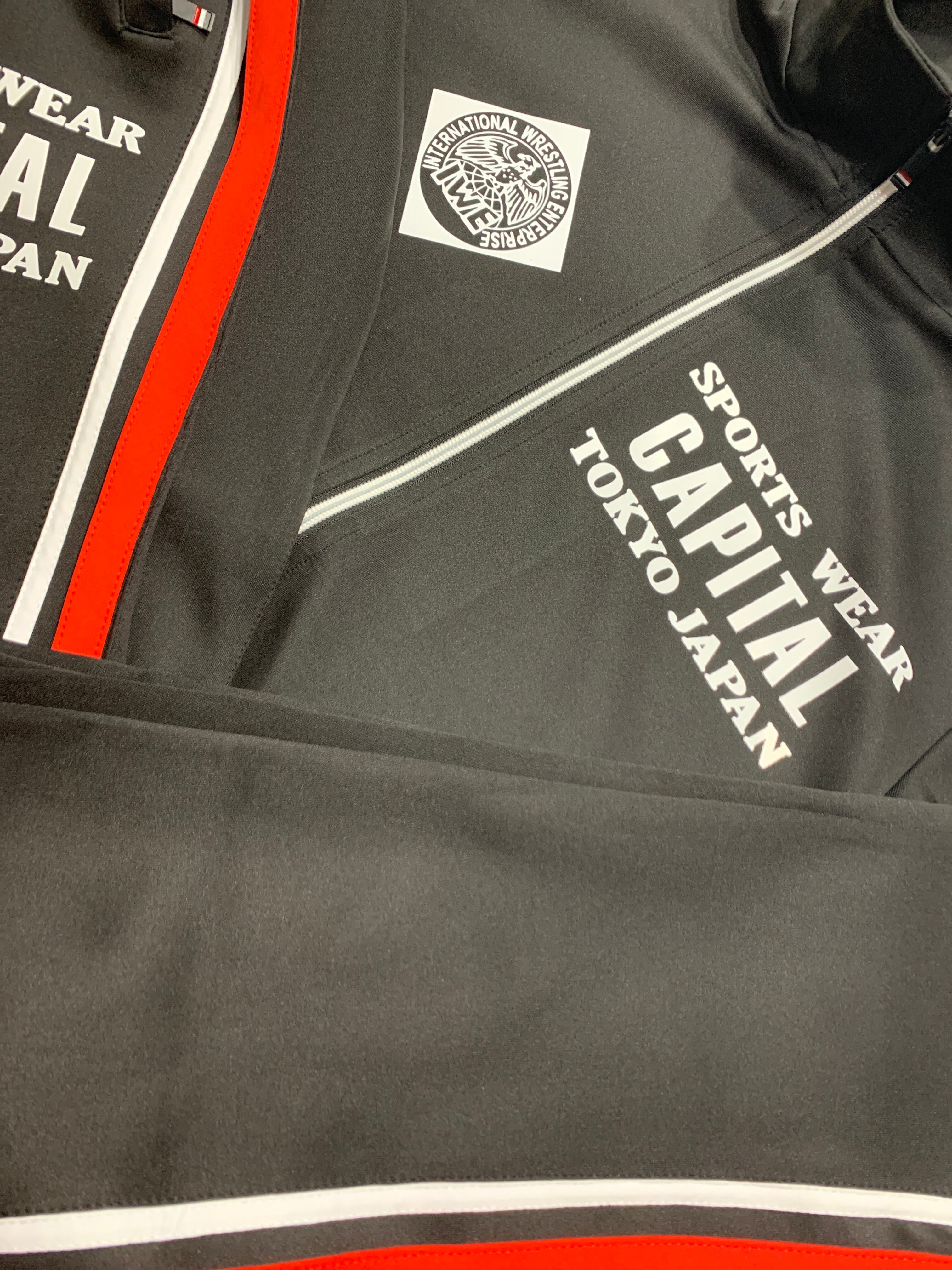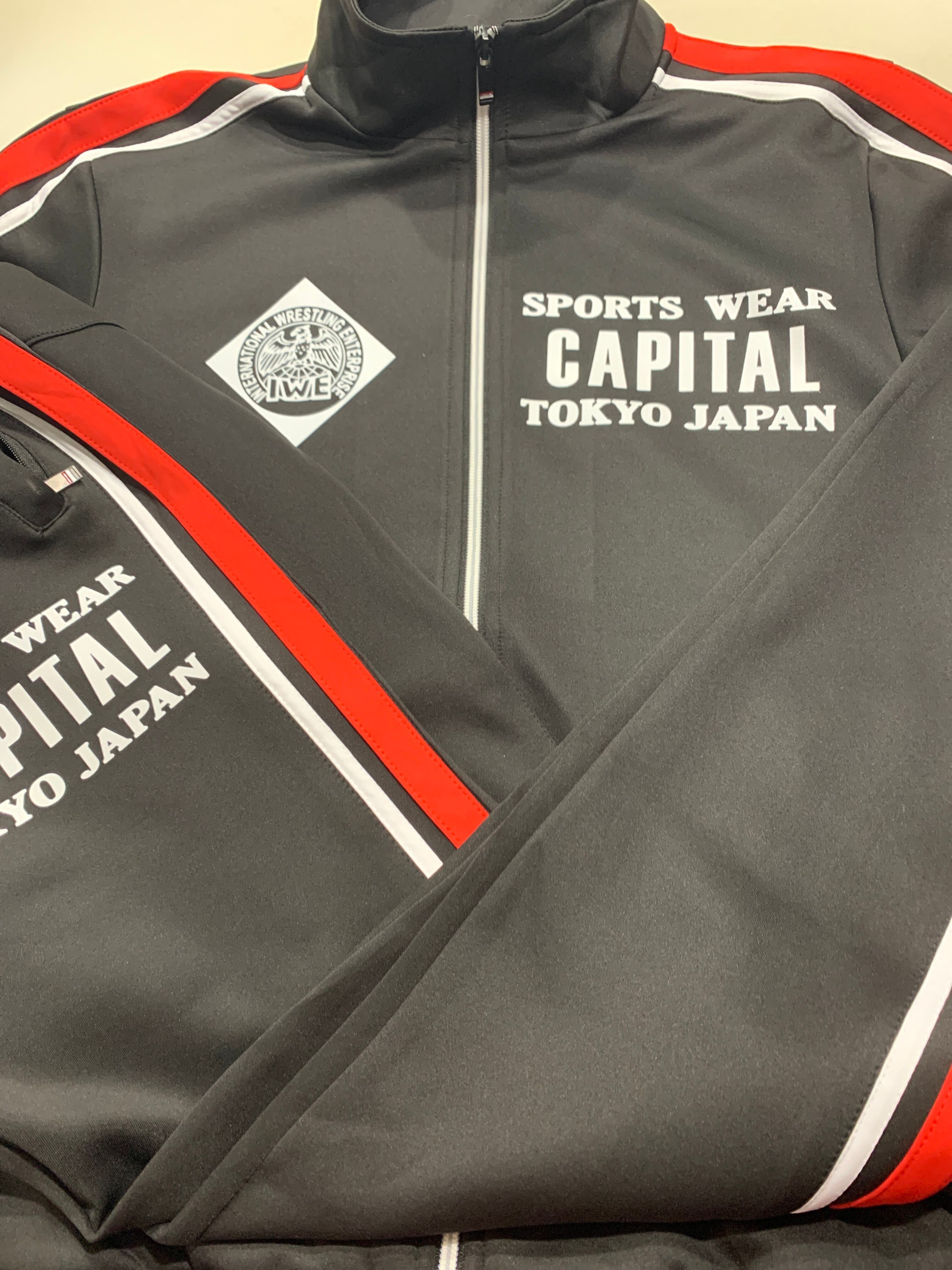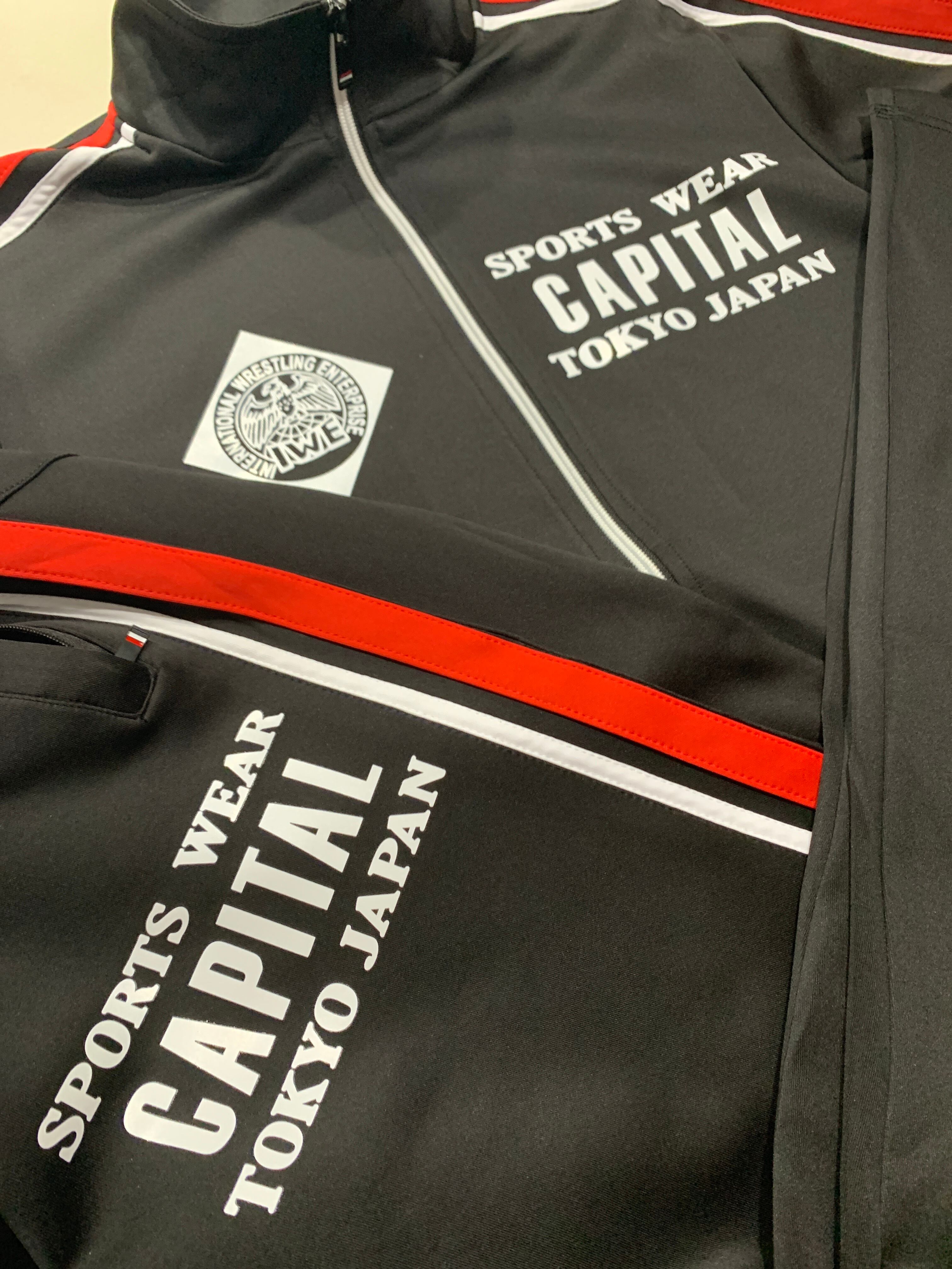 国際プロレス&キャピタルコラボ セットアップジャージ上下セット ブラック赤白ライン capital