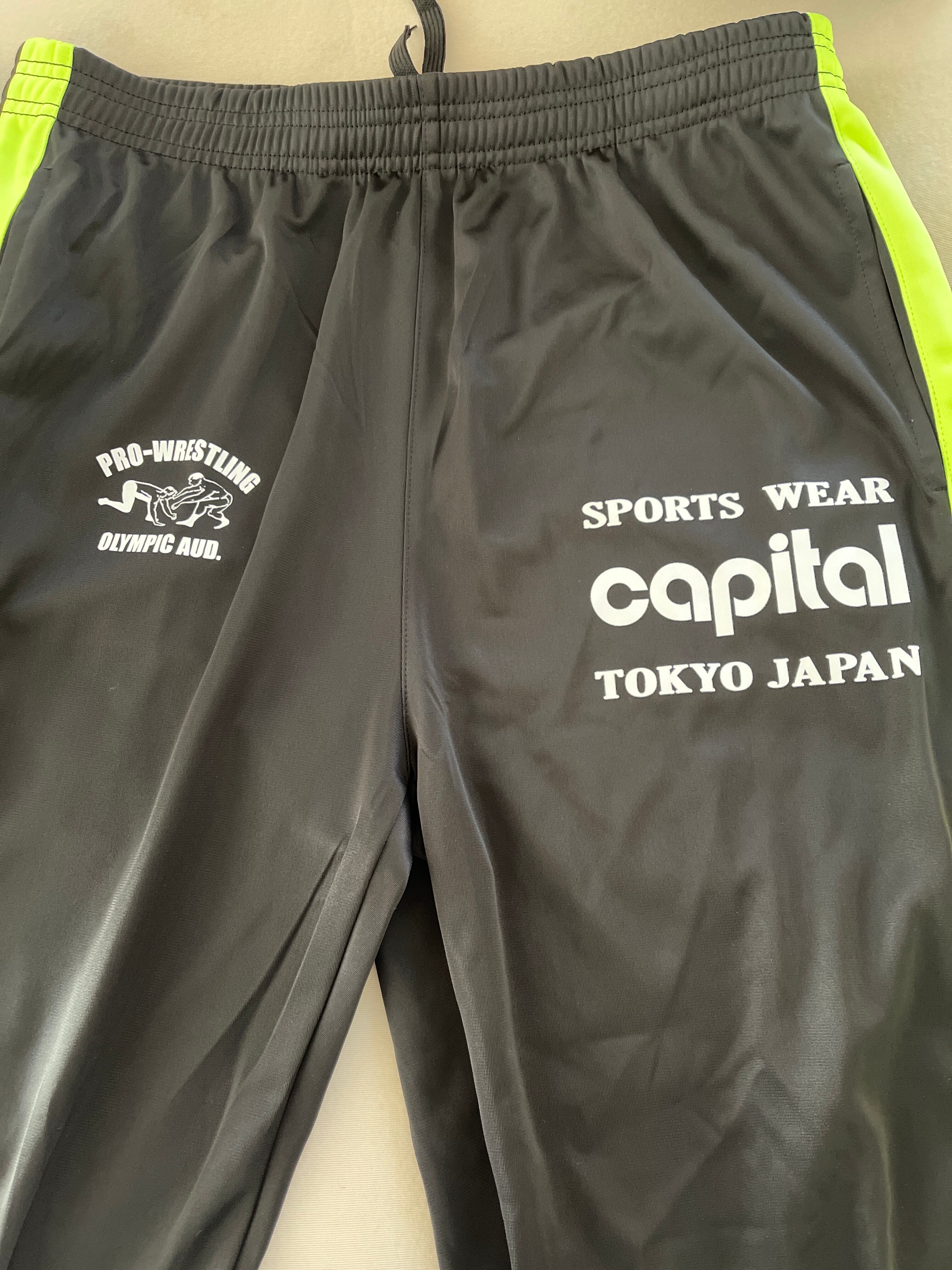 アウトレット品 キャピタルスポーツ& プロレスリング ブラック・グリーンライン ロングパンツ
